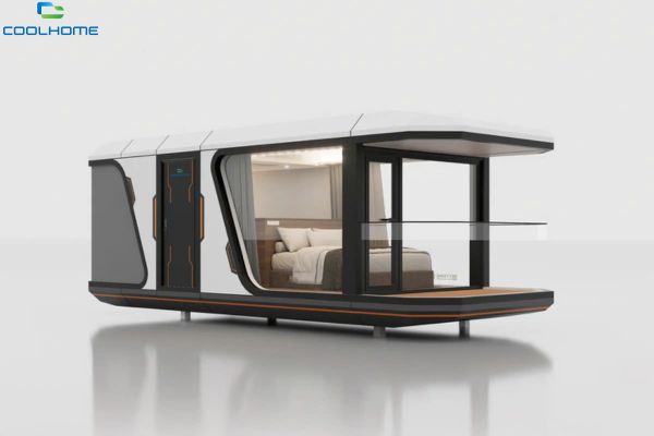 Coolhome gây ấn tượng với thiết kế lấy cảm hứng từ phi thuyền không gian hiện đại, đang trở thành xu hướng nổi bật trên thế giới. Kiểu dáng nhỏ gọn giúp tối ưu diện tích sử dụng, kết hợp cùng vật liệu kính tạo cảm giác không gian mở, thoáng đãng và tận dụng tối đa ánh sáng tự nhiên.